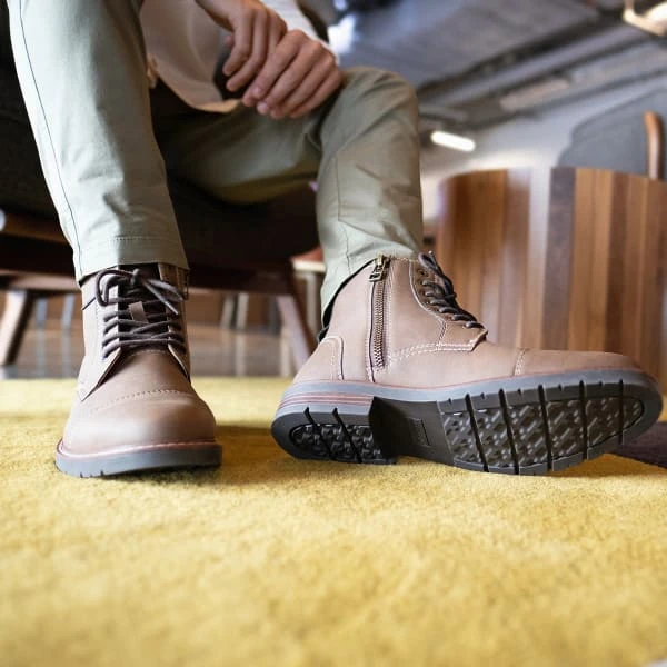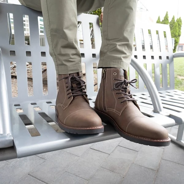 Lace up these Dockers boots and take on any day in comfort and style. The ultra-comfy footbed in these shoes provides next level support, while the lightweight outsole keeps your feet relaxed. These men’s boots have synthetic leather uppers, laid-on welts, detailed stitching, and that classic lace-up design to add a bit of rugged casual style to any look from jeans to slacks. Add these boots to any outfit to show off your adventurous side.