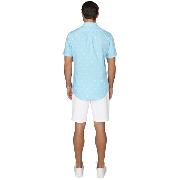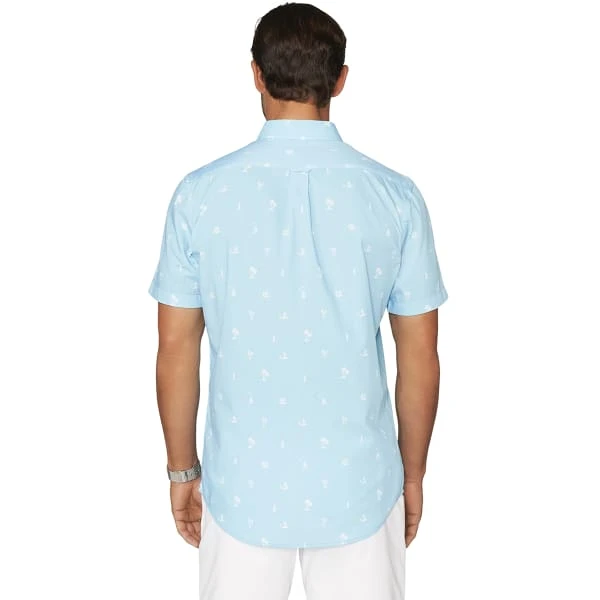 The men’s IZOD button-down shirt features a stylish design and cooling fabric for a comfortable feel at the office or a night out.